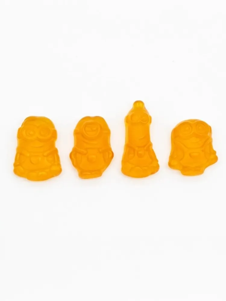 Es handelt sich um Kinder-Gelatinebonbons mit Vitaminen in einer speziellen Weihnachtsbaumverpackung mit Minions-Motiv.